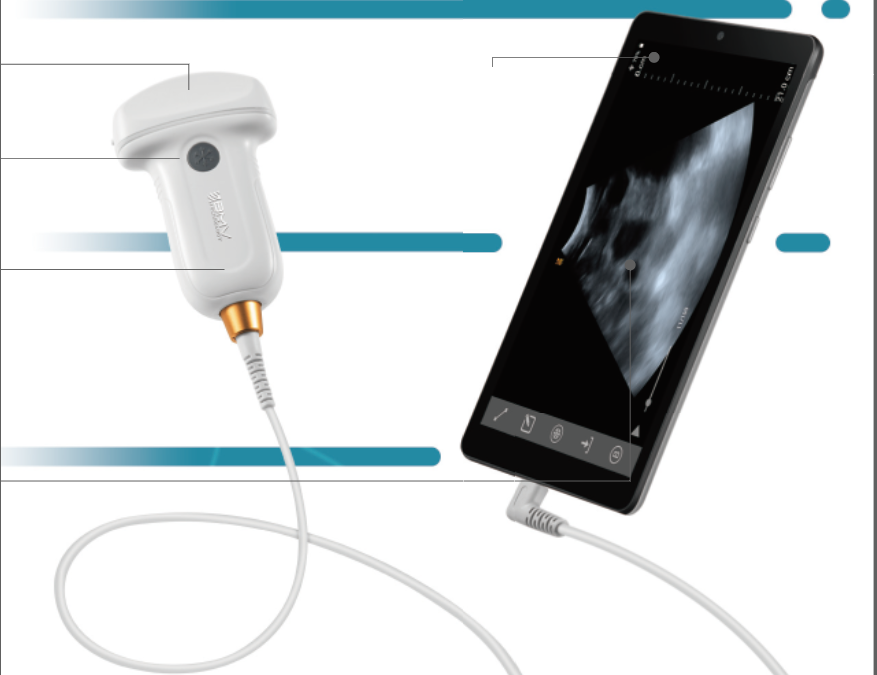 - 本装置には、8インチタブレットと正確な診断を可能にする 3.5MHzコンベックスプローブ が付属しています。