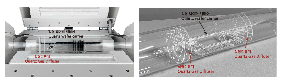 - 実験性能向上(オプション):石英ガスディフューザーおよびウェハキャリアによりガス分布を最適化し、プロセス結果を安定化。